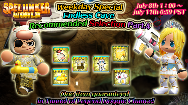 A 4-Star item from Endless Cave Recommended Selection Part.4 is guaranteed in Doggie Chance at Doggie Digging Tunnel of Legend!